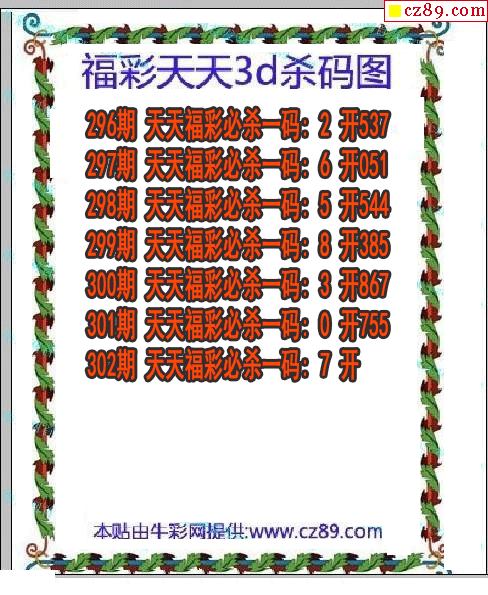 > 福彩天天杀码2025302期3d图谜(原创)